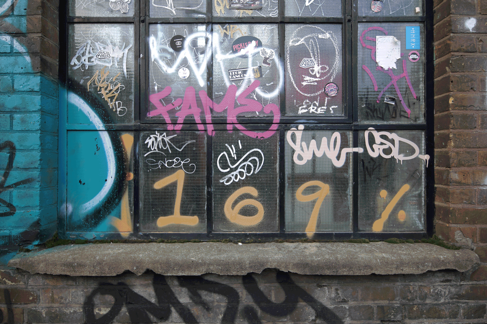 However in London brick walls were a canvas for graffitis and artistic explorations, for rebellion and non-conformity. Bricks transformed under the thin layer of acrylic paint, altered by vivid colours and plastic-like qualities.